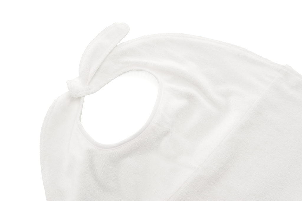 - Frottier-Lätzchen, Wickelmodell mit elastischer Schlaufe, auch in der nachhaltigen GRS-Variante erhältlich (recycelte Baumwolle)